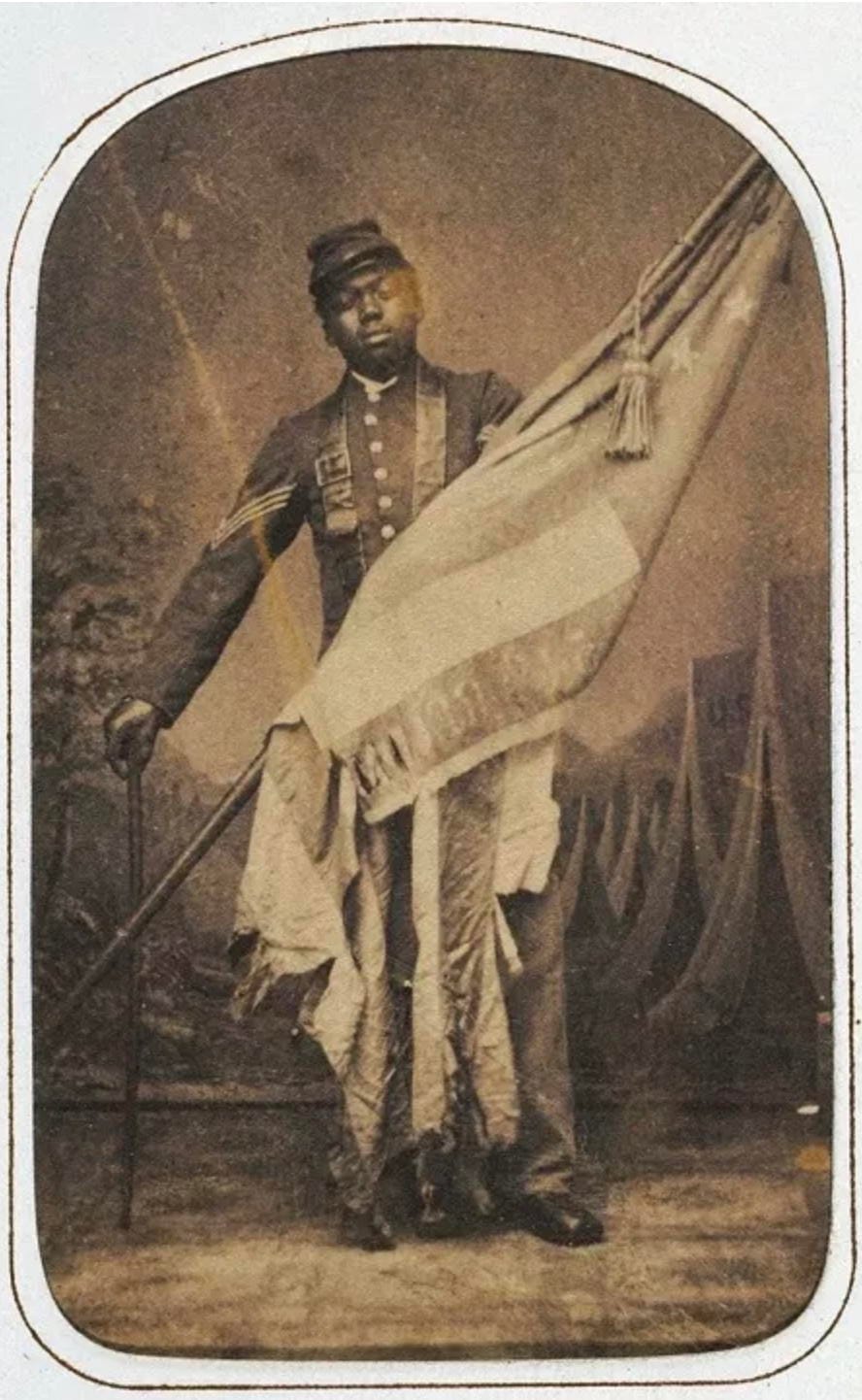 On July 18, 1863, these units endured casualty rates of over 50% in just the first few minutes of battle. They lost their commander, Col. Robert Shaw, but continued to charge into direct cannon and canister fire from the enemy, in the near-suicidal frontal assault on Fort Wagner in South Carolina. They planted an American flag on the top of the enemy parapets, but at the end of the day, the fort remained in enemy hands.