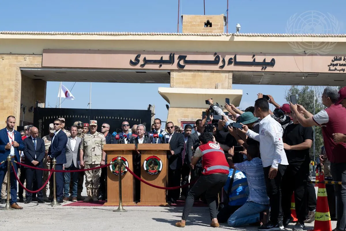 He went on: “I have just returned from the Rafah crossing—the symbolic lifeline for the last month for the 2.3 million people in Gaza. The lifeline has been unjustly, outrageously thin. In Rafah I have witnessed the gates to a living nightmare—a nightmare where people have been suffocating, under persistent bombardment, mourning their families, struggling for water, for food, for electricity and fuel.”