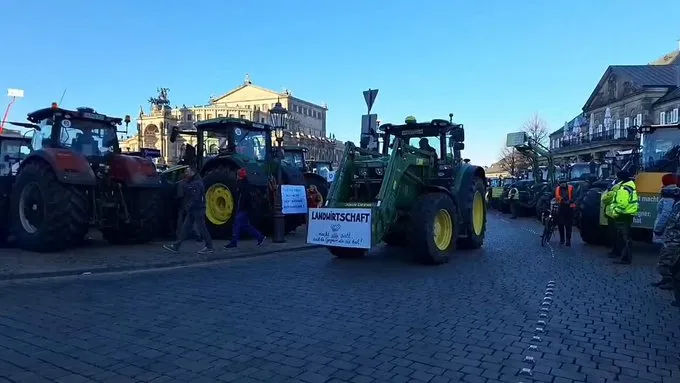 DRESDEN: Farmers blocked ramps to highways and people accepted it. Some 400 farmers and other demonstrators. The crowd, which was expected to number around 900, swelled to 5,000, and by noon reached 13,000! There were people from bakeries, breweries, produce stands, and all manner of the food chain, and the general economy.