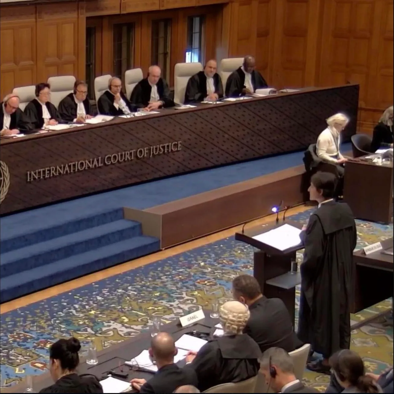 After explaining Israel’s control over Gaza, “its territorial waters, land crossings, water, electricity, electromagnetic sphere, and civilian infrastructure in Gaza, as well as over key governmental functions,” and that it controls all access in and out, Hassim outlined “the heaviest conventional bombing campaigns in the history of modern warfare,” killing more than 22,000 Palestinians in 13 weeks, and the “immediate risk of death by starvation, dehydration and disease, as a result of the ongoing siege by Israel, the destruction of Palestinian towns, the insufficient aid being allowed through to the Palestinian population, and the impossibility of distributing this limited aid while bombs fall.”