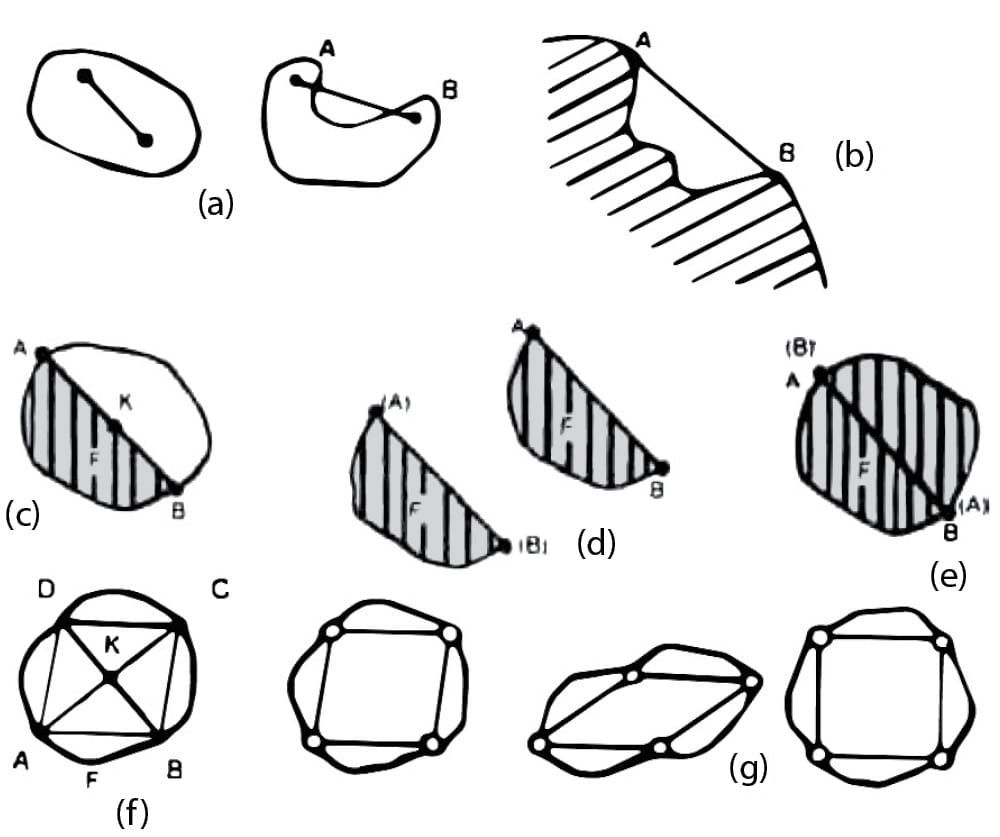 The solution to this problem can lie only within the domain of the constructive geometry of a multiply-connected manifold of the Gauss-Riemann sort (Figures 5-6). Thus, the kernel of the point: If it is the case, as Beltrami indicates, that these singularities are not simply points or holes in an otherwise continuously positive curvature, but rather regions of negative curvature, and if we were to discover that such regions correspond to the notion of strong forces, we are then on the track of a solution to this interesting problem of axiomatics.