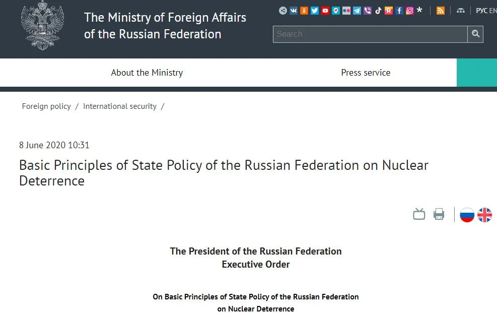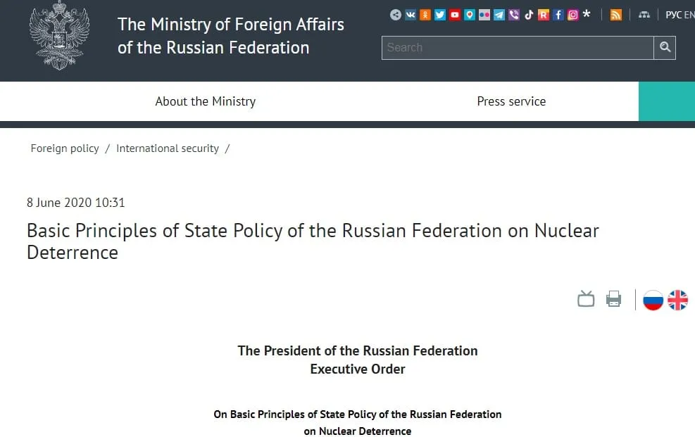 Davis quoted from Russia’s standing nuclear doctrine directly: “The War Zone wrote that by doing so, the attack could mean that one of Russia’s nuclear red lines has been crossed.… `The conditions specifying the possibility of nuclear weapons use by the Russian Federation’ include any `attack by [an] adversary against critical governmental or military sites of the Russian Federation, disruption of which would undermine nuclear forces response actions,’ Russia’s Basic Principles of State Policy of the Russian Federation on Nuclear Deterrence state said in a 2020 statement.”