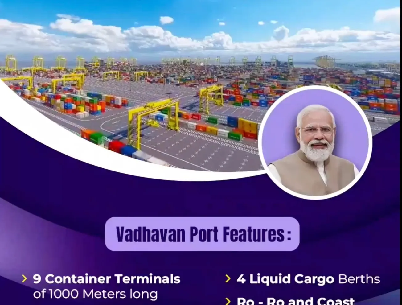 Projected to cost some $9.1 billion, the port will include nine 1,000-meter long container terminals; four multipurpose berths; a Ro-Ro berth; and a dedicated berth for the vessels of the Indian Coast Guard. It will have a capacity to handle 298 million metric tons (MMT) annually, including some 23.2 million TEUs (twenty-foot equivalents) of containers. The port will be connected with the national rail and road network, and is expected to provide direct and indirect employment for up to 1.2 million people.
