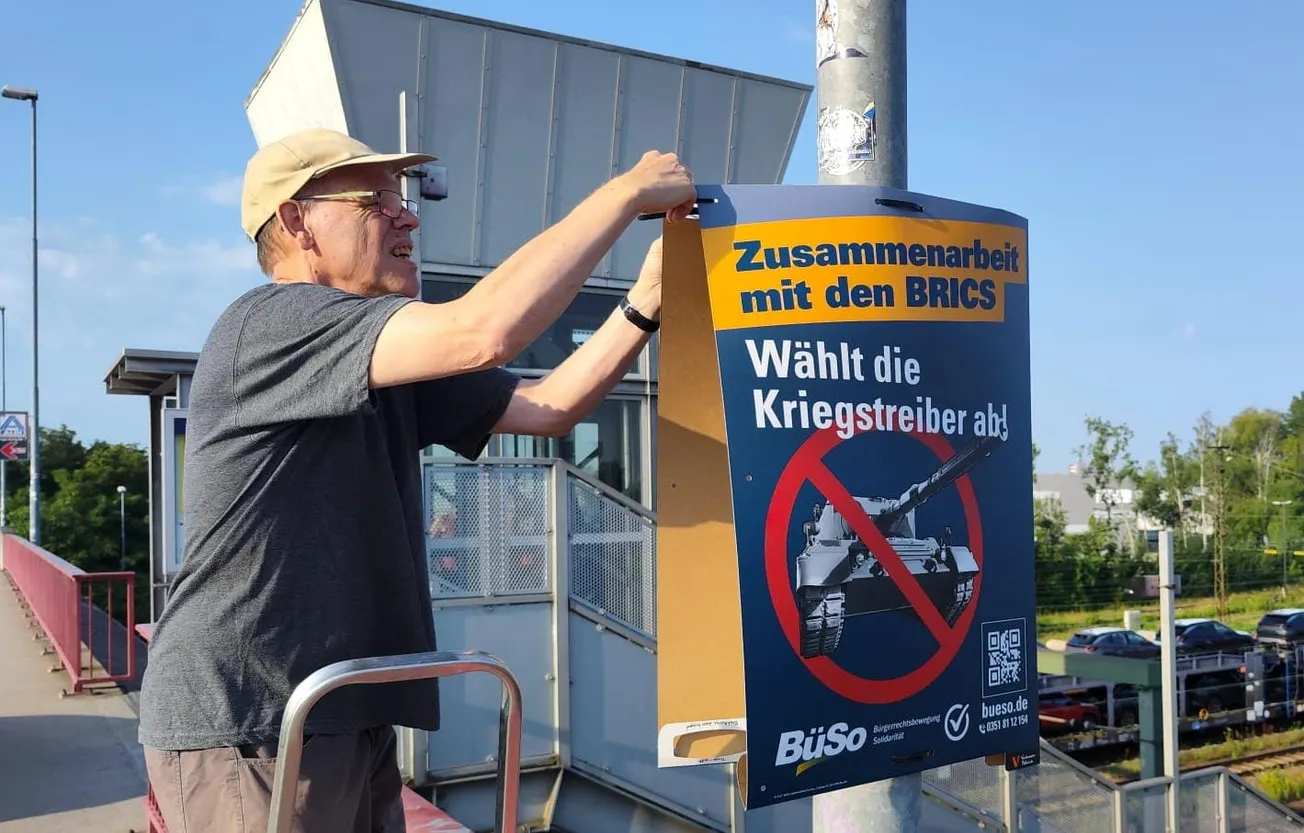 • In Germany, beautiful placards were posted before dawn throughout Leipzig, declaring “Cooperation with the BRICS, Vote Down the Warmongers!” These are from the BüSo political party’s campaign slate of 12 people for the Sept. 1 election for state parliament in Saxony. Their program, “Peace Through Development,” spells out policies in every area, from local to international. “We need negotiated solutions at a higher level to end the wars in Ukraine and Israel/Palestine.”