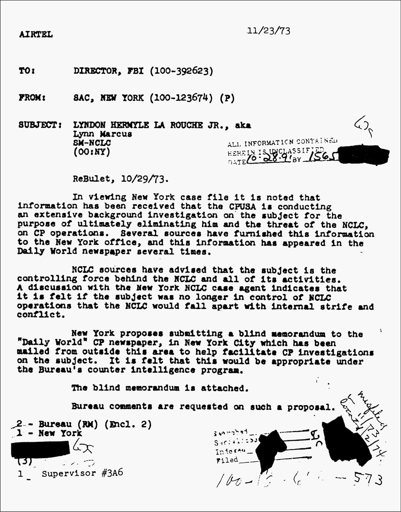 That was the second fully documented case of a U.S. Justice Department involvement in operations aimed at my personal elimination from politics. The first was documented in an FBI internal document dated late 1973. The first was an internal U.S. operation; the second, of Oct. 6-7, 1986, was international, including the involvement of the Soviet government of General Secretary Mikhail Gorbachev. To understand the higher level of command behind the way in which the Democratic National Committee bureaucrats have used the Party’s nullification of the Voting Rights Act to attempt to exclude me from this election, we must point to the crucial features of the 1973 and 1986 attempts at my personal elimination.