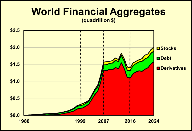 Total global financial aggregates today total over $2 quadrillion. As Fig. 1 indicates, the lion’s share of that is financial derivatives, which EIR estimates rose to about $1.575 quadrillion at the end of 2024. The component of total world debt of all kinds was about $318 trillion and, within that category, total developing sector foreign debt was about $8.8 trillion.