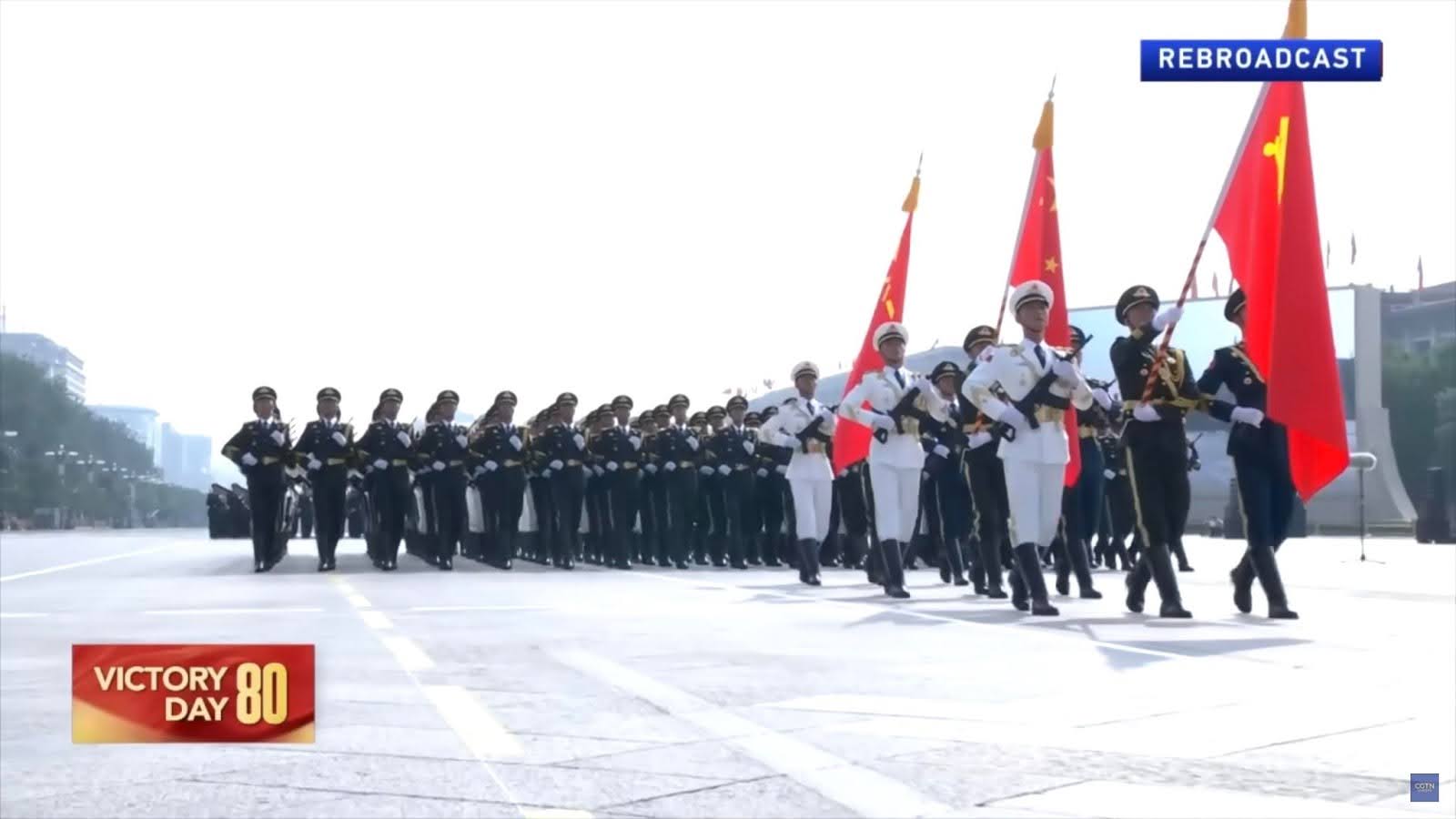 In his address at the ceremony, Xi outlined China’s enormous sacrifices in the war and its long path of rejuvenation, then said: “History cautions us that humanity rises and falls together.” Only when all countries treat each other as equals and support each other “can we prevent the recurrence of historical tragedies,” Xi went on. “Today, humanity again has to choose between peace and war, dialogue and confrontation, win-win cooperation and zero-sum game,” he warned, and stated that China would unflinchingly advance that same commitment. Xi ended his remarks by raising his voice, declaring: “The great rejuvenation of the Chinese nation is irresistible! The noble cause of peace and development of humanity will prevail!”